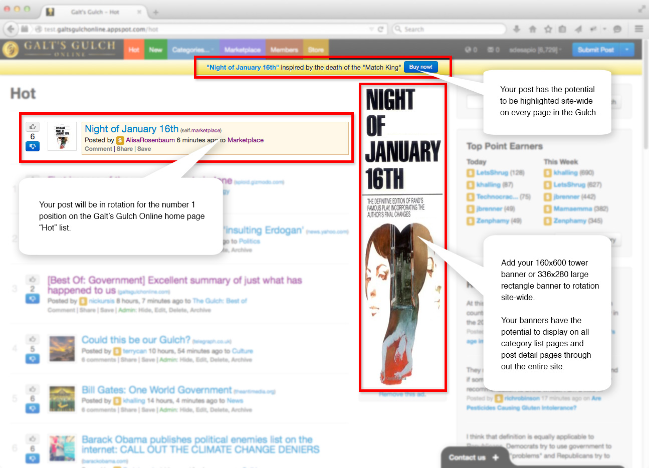 20,000+ liberty-minded Ayn Rand enthusiasts are here in Galt's Gulch. And, they want to patronize your business.